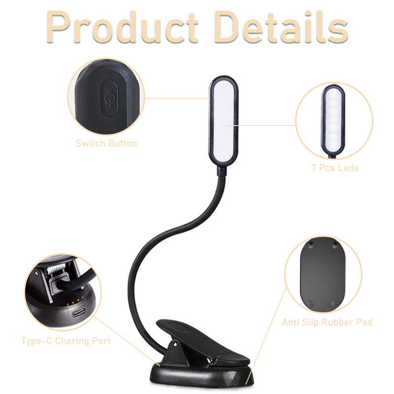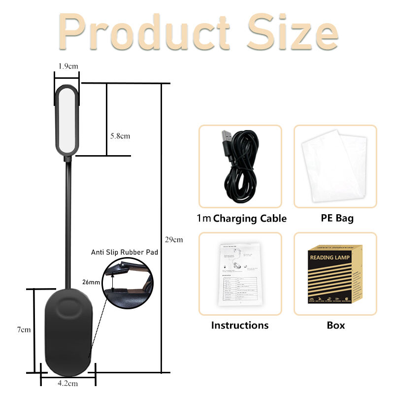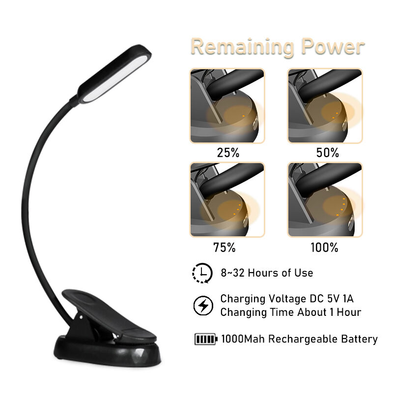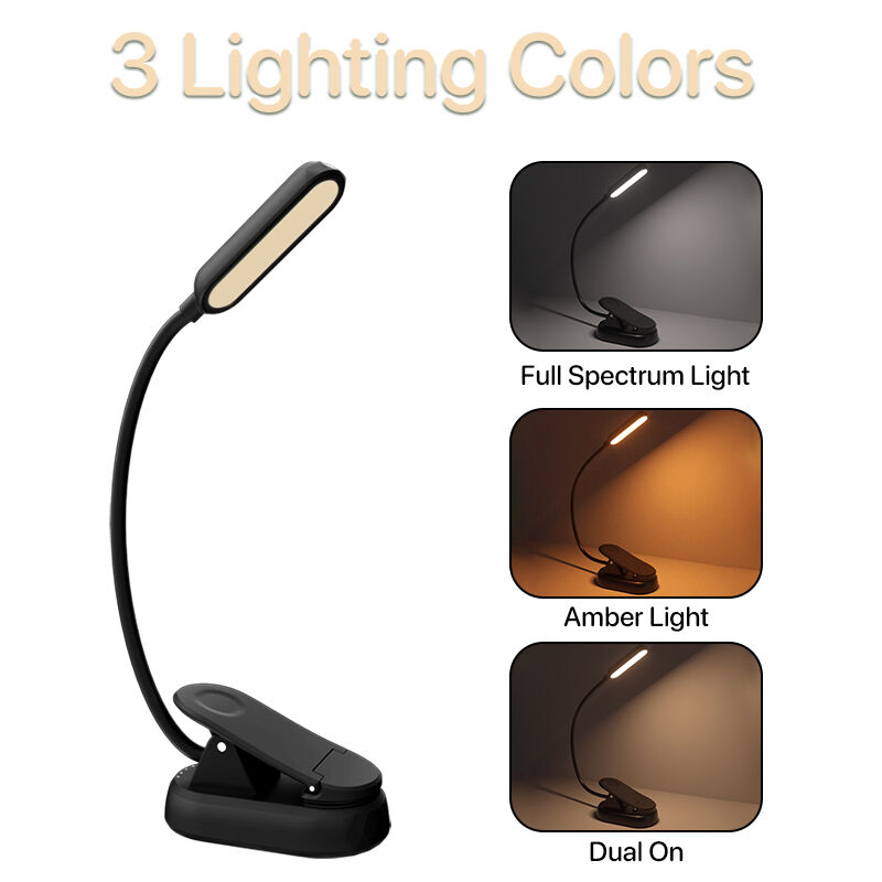 1.5W 120lm Led Book Light 4000K Full Spectrum & 1600K Amber Color Reading Light Black Body Book Light