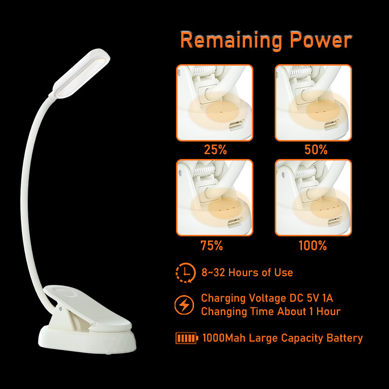 1.5W 120lm Led Book Light 4000K Full Spectrum & 1600K Amber Color Reading Light Black Body Book Light