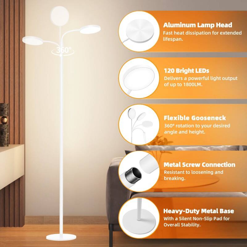 Yarrae 18W Modern Floor Lamp, where sleek design meets intelligent lighting. Crafted from premium white aluminum, its clean contemporary silhouette (200x200x160mm) seamlessly integrates into any modern or European-inspired home decor.