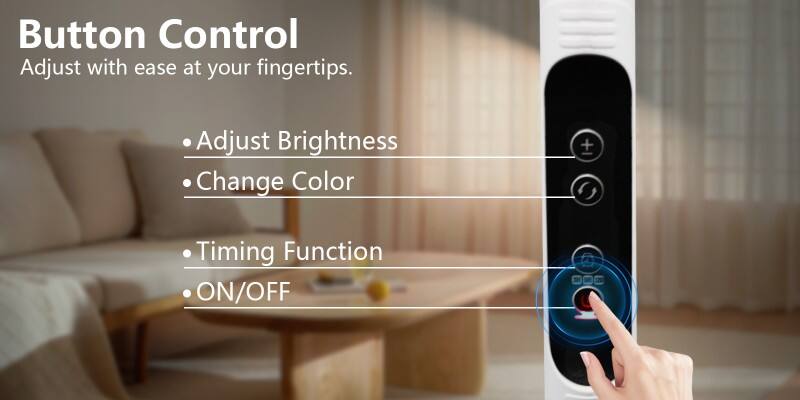 Easily adjust brightness (stepless dimming), switch colors, and set auto-off timers. Enjoy full control either from the integrated panel or via the included remote.