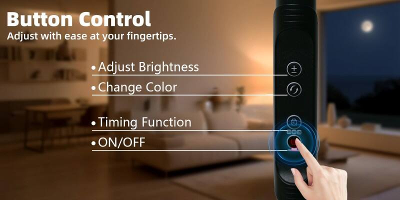 Easily adjust brightness (stepless dimming), switch colors, and set auto-off timers. Enjoy full control either from the integrated panel or via the included remote.