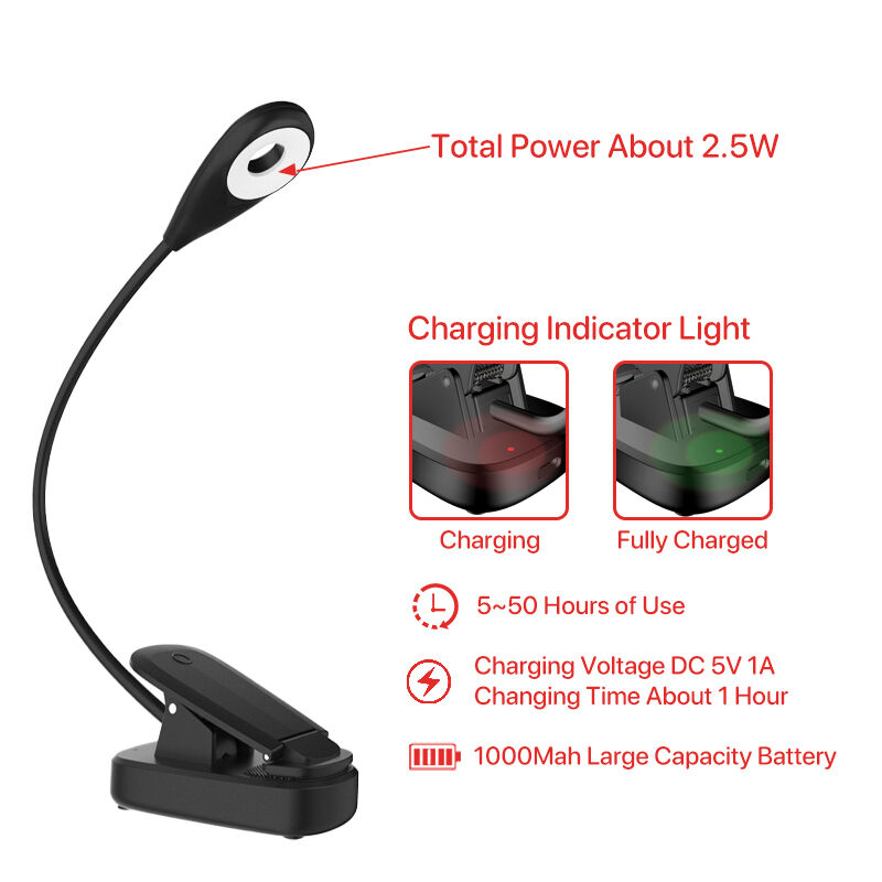 625-630nm Red Night Light 5-50 Hours Use 3 Brightness Settings Black Body Fast 1-Hour USB Recharge