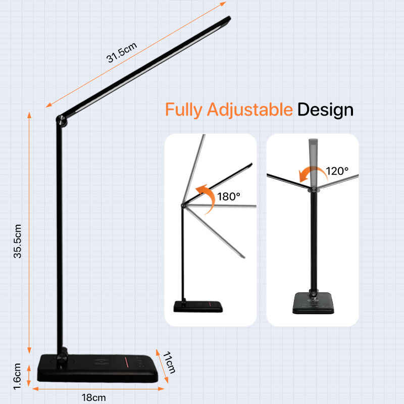 The body crafted from black aluminum, combines five core functions: stepless dimming, color temperature change, a USB power port for devices, an auto-off timer, and the night light. A single Type-C cable(An adaptor is needed) powers the lamp and charges your mobile devices simultaneously, significantly optimizing desk organization and convenience.